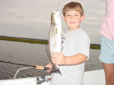 Also, during the heaviest season of the shrimp movement which is in the Fall season comes thousands of small Redfish (Red Drum). One of the most popular inshore game fish in the US. The reds move into the inshore waters to eat the shrimp, as do the saltwater speckled Trout. Both are year round resident fish, but seem more abundant in the Fall and early Winter seasons. Also, both are excellent targets for light tackle fishing and the table fare of the Speckled Trout is hard to beat.