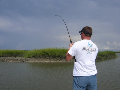 St. Simons Island and the surrounding Islands are loaded with many species of Shark. The Sharks are in our area thick from April to November. The main Target species is the black tip shark and Spinner Shark. These fish are both in the Black Tip family and are sought after by Anglers for their acrobatic leaping and jumping. Shark fishing in Georgia is very, very dependable and is always fun! See Shark Fishing Video -