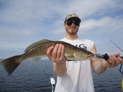 The amazing winter weather continues on Tampa Bay. Once the dense fog burned off we were treated to balmy conditions with highs near 80. My anglers Jack and son Joshua from Chicago got things started quickly as the very first cast resulted in a spunky trout. The white bait wasn't in the water 10 seconds before it was fish on.