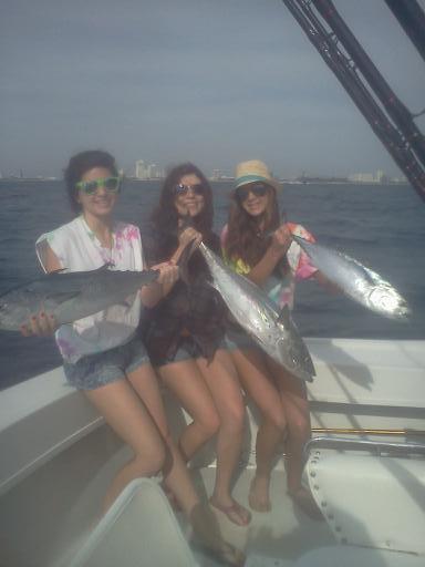 Three young ladies from Texas, Jacklyn O'Donnell, Michelle O'Donnell and Gabe Yank, along with father, Kelly, and wife, chartered the Happy Day Today along with the Topshotfishing team to do some offshore sport fishing. With blue skies, variable winds and the sun gleaming, it was a perfect day to do some sport fishing in Fort Lauderdale FL.