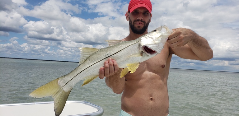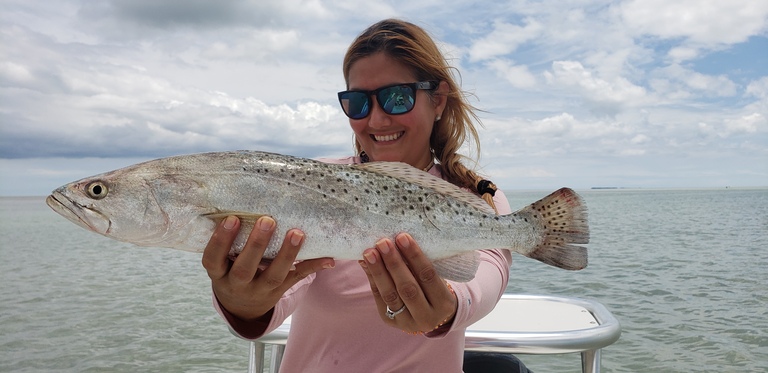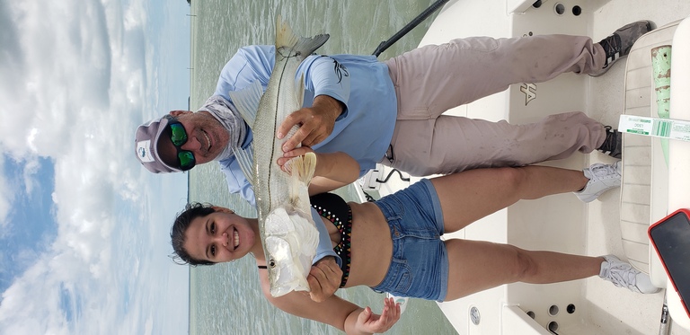 Some people just have that "juju" and my fiance Jeanny has that "juju". On another day off we went down the road to Everglades National Park with her niece and her husband. Valentina and Sandy hadn't fished before and they were really excited, I was too, I love this place. The first few spots were slow but once the tide bottomed out it was on! Jeanny landed a big trout and refused to take a picture with it while it was alive while the rest stayed busy losing a few nice fish and catching small sharks and jacks. Then a few spots later the tide started coming in and they caught redfish, snook, sharks and more. However, Jeanny caught a nice redfish and a big snook which means....she got a "Grand Slam"! Sandy and Valentina also caught snook and redfish during a frantic non stop window of about an hour where fishing was on fire. I couldn't help it and I grabbed a bonefish rod with a Mirodine and hooked fish on almost every cast resulting in a grand slam of my own with snook, redfish and trout. Just like that, the wind cranked up to about 25 MPH within 45 seconds so we called it a day and headed home reveling in grand slam glory.