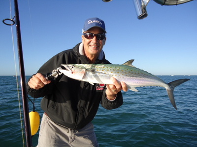 A steady flow of chummie white baits kept the action red hot for 3 hours. We took over 50 Godzilla Macks that morning. I cant recall Spanish Mackerel this big in such big quantities ever. We lost 2 Kingfish both mid 20 pounders. We also had sharks spinners and a brown shark I could not identify.