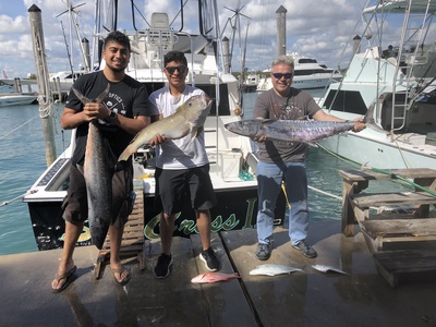 It was another typical winter morning we had great weather a north wind blowing 5 to 10 kn really excellent conditions we started it off by hitting the reef and catching some really nice Kingfish up to 30 pounds after a little while of fishing the reef we had it off shore looking for mahi-mahi and tuna also hoping to hook up a beautiful wahoo but it Was a little bit slow that day Offshore I could not find no birds or current so I decided to go ahead and make a couple deep drops and see if we could score a couple nice tile fish with the north wind holding the boat steady we hooked up with this beautiful tile fish over 15 pounds only on the sea cross