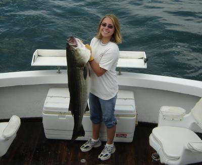 The month of August is usually a good month fish wise in Cape Cod Bay. When the month first started it seemed things had changed and we'd be looking at a slow time of the season. Fortunately things changed for the better. A fair amount of larger bass have moved up onto Billingsgate Shoals and made themselves available to us, the charter fleet. The last of the three Rock Harbor Tournaments is being held on Thurs. the 30th of August. It begins at 10:45 am. so if you're not already booked on one of our boats, give it a shot and sign up with Roxanne at the booth.