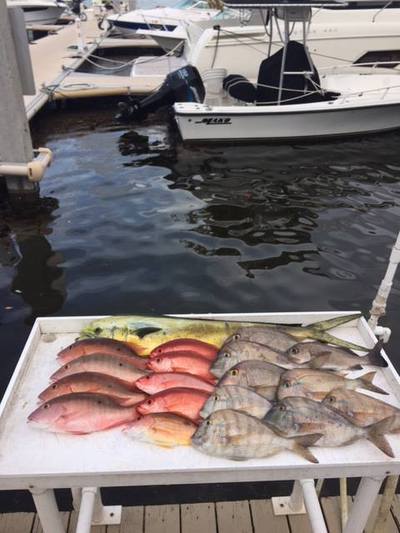 Fishing out of Jupiter has been good. Thank god the brown water is clearing up and the fishing is getting better again. Dolphin fishing has been good out to 1,000 feet. There are also a few cruising the ledge. Sailfish have been nailing bait on the surface around the ledge. Schools of bait on the surface is how we have been finding feeding fish. Mullet are everywhere on the surface on the beach. There's great action around these schools. Everything is tearing this bait up, Spanish mackerel, Snook, Carvels, tarpon, and pompano. The kingfish are still around tearing up our baits. Bottom fishing has been hot! We are staying busy all day catching some really nice Mutton Snapper, Vermilion, and jumbo Porgies. Fall is here and fishing is picking up. To get on the water visit www.gettinluckyfishing.com for charter information. We still have acouple of open dates in October. See you on the water.