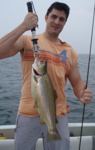 We took a poll and the crew decided brown trout were the sure bet. And sure bet it was. Soon after we started setting lines the drags were screamin. Small Mich Stinger run 10-30' off the riggers over 80' water was the fomula for success.