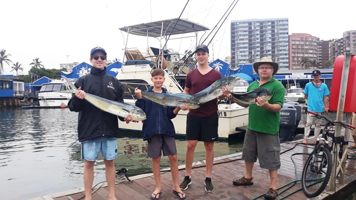 Stunning conditions with flat seas and light westerly conditions, water is still turbid and averaging 23deg.C. By 06h30 we had a triple hook up, 1 on/off and we landed the other 2. A little bit later we had another triple hook up, 1 on/off, 1 threw the hook at the boat and we landed 1. We had a few more single hook ups that we landed and a few more on/offs. The Dorado are definitely around but conditions have been difficult on most days and the weather has not been on our side for the most parts, even so we still getting Dorado which are giving many families some great sport during the holidays.