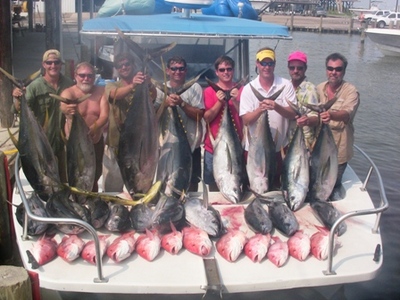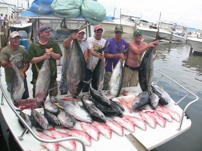 The last few weeks of fishing has been great. We have been running tuna trips and it has been very rewarding. The tuna fishing is red hot right now. We had fish jumping out the water for hours on our last trip. We have caught double digits on yellow fin tuna every trip we had for the last 3 weeks. The yellow fin tuna have been ranging from 60lbs. to 120lbs. lately.