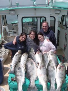 Wow what a trip and what a great group of young adults. Today we had the Fontebonn Hall Fishing club out for a day of Bassing and Bluefishing And everything was perfect. Paul G Along with Mary , Colline , Liz ( club President) With their dads Matt and Paul. Combined for 12 keeper bass between 15 and 30 lbs and 70 some odd blues to 10 lbs all in all a great day of fishing With some great new friends. The girls out did the adults early and well just out did em all day. Chunks were the ticket and once the tide slacked it was over back to the dock by 2:30