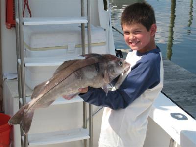The cod and haddock fishing has been excellent with good numbers coming aboard each trip. Last week we had a ten year old boy on board by the name of Chad who knew how to fish. He landed cod and over 10 haddock by himself with the largest one of the day being over 10 LBS and a whopping 30". During the trip his uncle landed a nice large wolffish along with several more hadddock.