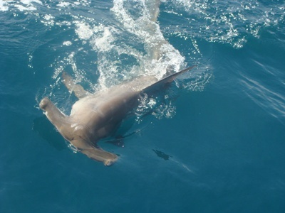 John fought this fish back and forth for over 45 min and by the time he got this monster hammer head shark to the boat he was beat. I mean both the shark and John were beat. (LOL)