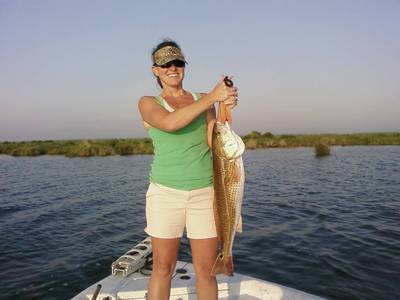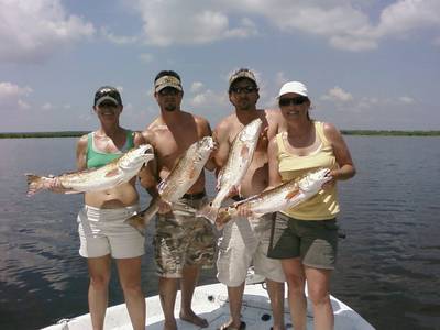 We left Lafitte Harbor Marina at 6:00am and headed out to the Little Lake/ Turtle Bay area, where we have been doing really well with Redfish for the last few weeks. On our first stop we only caught one keeper red and a one undersize red. I decided to go and try another area that we have been doing well catching Redfish, and it turned out to be the honey hole. Jill and Hillary hooked a double not long after we stopped the boat, only to have Jill's huge red get off just before I could get it in the net. She was very upset, and after we teased with her and a little kidding around, she did manage to catch another red that measured 28 inches. The first red Hillary hooked was a 29 ½ inch beauty that she was really proud of. Seconds later, Benny hooked a nice 27 inch red that we put in the box as well. It did not take long before we had our limit of 5 big Redfish over 27 inches, and were hoping for smaller fish we could actually keep. Seth caught a few really reds as well. There were a few times we had 4 Redfish on at once, this is always fun to watch, while everyone scrambles around the boat trying to keep their lines from getting tangled with one another. And I have to say, these ladies sure gave the guys a run for their money on this trip, Jill and Hillary put a bunch of Redfish in the boat. At 10:45am we had a limit of 25 Redfish, 3 Black Drum and releasing another 10 to 12 reds that were over 27 inches that we could not keep to fight another day. After catching our limit of Redfish, we decided to go out to Barataria Bay and try to catch a few Speckled Trout, only to find the tide at a slack and the trout bite kind of slow. We boated 10 Speckled Trout before heading back to the dock to clean fish. All in all we had a great day of fishing, and as always this was New Orleans Fishing at Its Best!