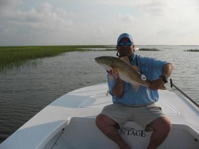 Saturday, I fished the skinny water of the Topsail Island area with Rob aboard. We boarded the Vantage and headed up the ICW in search of Redfish. We found a little bay that I had not fished before, but it had the look of promise, so we decided to give it a shot and were not disappointed.