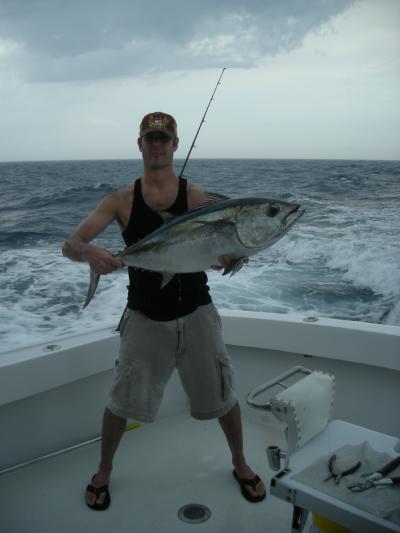 We are beating my record catches from 15 yrs ago. This week we had one day with 9 Tuna, another day with 17 sailfish, another with a 35 pound king and 20 others over 10 pounds. We had 12 Sailfish yesterday, 5 dolphin one 25 pounds and 5 amberjack, All in a day. We have had the best sailfishing in yrs. The sailfish have all been caught on circle hooks and released. I expect the fishing to continue this week. We will be out most everyday so I will update you on our success. If you are fishing on your own boats, the fish have been in close and biting live pilchards best.
