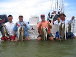 The rest of the guys strung reds and trout also. The second spot was non productive, but on the third stop I struck with a 27 ½ inch trout the hit my TTK II. The last stop of the day was the most productive, we all stood in one spot and proceeded to catch redfish after redfish. We never moved from the hole, while the school of redfish would circle around and someone would be bent up. We did this for about two hours and called it quits because some of the guys were worn out including me. Everyone caught fish and we all had a great time. Fishing had been good and more schools of redfish are starting to show up. Juan and Brad I had a great time and hope we can do it again, but next time don't bring all of HEB with you.