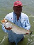 7/4 - I had the pleasure of fishing with good friends Anicieto and Ruben, also joining us on the trip was Juan and Brad from Austin. Fishing has been great and today was no exception. The fish cooperated from the beginning. Our topwaters drew attention from hungry trout and reds. We were fishing a huge mullet line and the fish were in the mist of the bait. Juan who had never caught a red before accomplished his first red 20 minutes into our first wade.