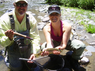 The fishing in the mountains has been getting better every day as spring runoff is coming to an end. There have been hatches of stonefly's, caddis, pmd's, and even the brown drake on one stream that we fish. As the streams start to drop, and become safe to wade, the fishing can be very good. Most of these streams have not had any anglers fishing them since last fall! They are often anxious to hit the first dry that they see this time of year. On the small stream the best patterns have been hoppers and the mini hot. If they are not hitting them, all we have been doing is adding a small bead head or a large hare's ear if the brown drake nymph is around.