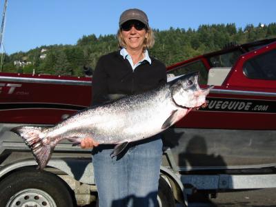 The fall run is in full swing with fresh Salmon coming in every day. This week we have seen many 30+ pound Chinook with some every day over 40.We still have a few days left on the schedule for the last half of September and some days in early October. Call 541-247-4025 or 541-698-7480 cell for booking information. check our site at www.RogueGuide.com .