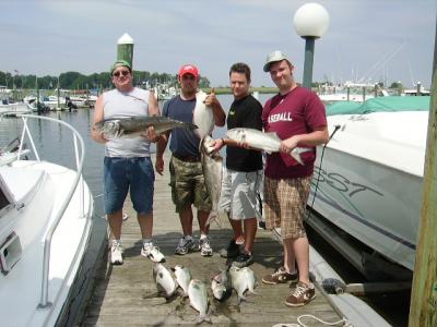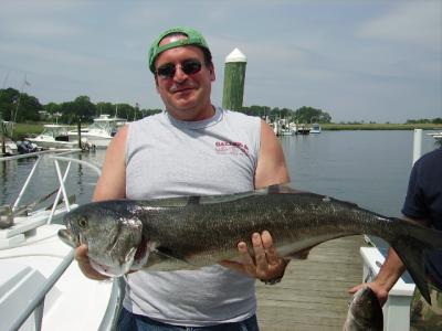Jerry and the guys had lots of pulling big Blues over the reals the only fluke was 21" and the Big Blues was 16lbs Jerry got the Fluke and Bob got the Big Blue