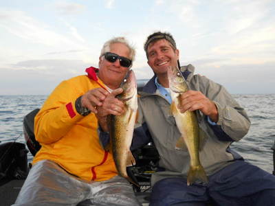 I had longtime clients Jim Lewinski Sr. and Jim Lewinski Jr. We started out the day drifting the breaklines with Lindy Rigs. That produced zip! We hit several spots but nothing happening there. We finally ended up getting the boards and spinners out for the last 3 hours of the day and ended up with 5 "quality" sized walleye. Here's a couple pictures of big and little Jim from yesterdays trip (and video).