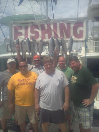 We put two plainers down, both with sea witches and double hook Bonito strips. We had Ballyhoos for surface baits. After each catch, the anglers celebrated by having a beer. We would up with 10 Bonitos, 3 Kingfish and 4 Tunas.