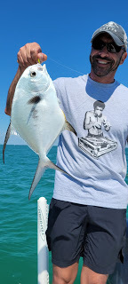 It's always interesting to me how things work out sometimes. Today I had Anthony and Christina from N.Y. and if there was a theme to the trip and their attitude to catching fish was "we're on vacation, we don't give a crap." They were relaxed from the moment they jumped in the boat and well, that relaxed me too. I took them to the first spot of the morning and Christina quickly outfished Anthony catching jacks, snappers, losing a snook or two and more. Then that spot slowed down so we hit the finger channels where it started off a bit slow but as the tide began to slow down the fishing picked up. Hmmm, that's weird. Anyway, they were on fire catching nice yellow jacks on every cast and mixing in a few snappers and other species along the way. Then it happened! A school of permit popped up behind the boat and were cruising on the surface for all the world to see. I pointed them out to Anthony and a perfect cast later he was on! We saw the permit come up and eat, it was awesome! After a careful fight, we landed the permit and got a good release. Then Anthony asked me, "So why was that a big deal?" LOL I had to explain it. Time for him, to pick a new hobby.