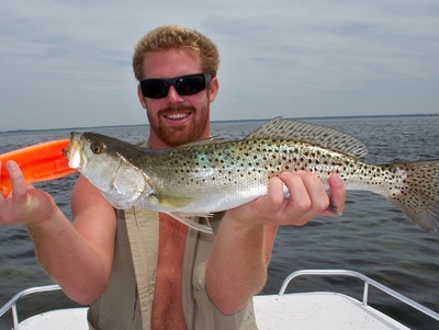 The near shore bite has a number of species providing non stop action. Trout, mackerel, lady fish, sea bass, cobia, grouper, and sharks are all being caught in 8 - 12 ft of water. I usually drift the grass in these depths and bounce a white GULP shrimp on a 1/4 ounce jig. This is a great tactic to use because the small fish can't steal the GULP and you will catch a mixed bag of fish. For the sharks, I break out the heavy spinning tackle and float cut mullet or lady fish behind the boat in a chum slick. Keep a look out for cobia to be swimming with the sting rays or large turtles. There are a variety of lures you can throw to a passing cobia. The key is to keep the lure moving once the cobia sees it.