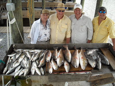 Dave Lemoine from Indiana was in town visiting family and friends and set this trip bringing along the Reed family Jerry Sr, Jerry and Beau. Dave is originally from Louisiana and it had been a long time since he fished the marsh. Things started off great right in the trout plastics under corks had fish coming in the boat but only half went in the box a lot of smallies. Headed a little further out and found some bigger fish eager to take the baits. But the WIND made its appearance again and shut down the bite and made the area I caught in yesterday unfishable. We worked around getting a few more trout and the decision was made to catch some redfish. Dead shrimp under corks working the points and the reds and drums were filling the box. The highlight of the day was when we had a big red break off at the boat and the cork just stayed in the area. So we went after him and Beau made a perfect cast and hooked the cork and landed the fish. It was like scoring a touchdown. A lot fun with this group and Dave really enjoyed being on the water back in Louisiana.