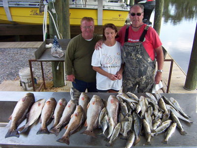Joan. Joe and mike had not fished since June and were ready to go Sunday Morning. First stop we were in the trout fishing live shrimp and plastic under corks. The fish were mixed but we had 15 in the box nice way to start. We picked some more trout and a couple of reds but seemed to pick up a jinx somehow we could not get the fish in the boat for awhile. They either got off or broke off at the boat. A little alter at another spot the jinx was broken and the reds were coming in steady along with some more trout. We ended the day with a box full of fish. Awesome weather and good company and good time.
