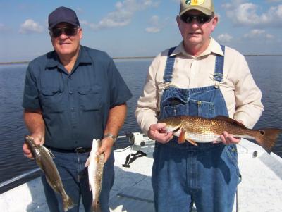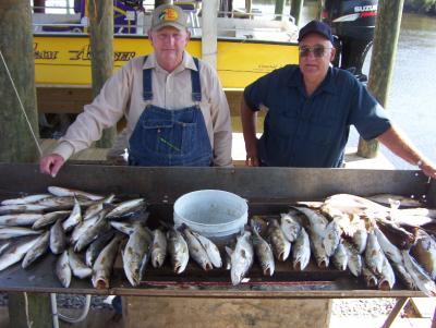 Charles Johnson always makes a few trips with me every fall for the past 5 yrs and this year will be no different. Tuesday we started out right on, some nice fish but some boats ran thru them, so it was off on the hunt. It only took two more stops to fill the guy's limit along with a couple of reds for the grill. Live shrimp under corks or plastic was doing the job.