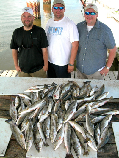 Not much changed from day to day except the fact that the fish bit faster than the day before. Two stops was all it took for the boys to whack another 75 speckled trout. They all had a blast and couldn't believe how fast the fish ate up!