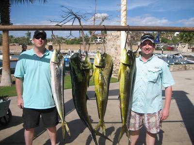 For the fleets out of La Playita, Puerto Los Cabos, their mainstay has been for dorado, these fish were found in good numbers throughout the week, Particularly from Punta Gorda to La Fortuna, most charters were catching limits and releasing other fish as well, lures and bait are working equally well. Sizes ranged up to 25 pounds, average dorado was 10 to 12 pounds.