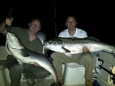 Andy and Mark with a pair of big bass taken on live eels last night.