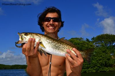 Bobbie from Kansas City was onboard this morning for a half day of fun fishing in Biscayne Bay and boy did we have a blast! Between a steady supply of bent rods by trout, jacks and snappers and funny stories our four hours went by quicker than expected. The fishing has improved on the backside of the new moon and the trout in south Biscayne Bay during the incoming tide were aggressive and eating our soft plastic shrimp under corks. We ended the day by Bobbie landing the biggest trout of the day on the last cast, a nice 18+ inch trout.