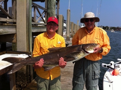 The bigger Reds are starting to show up in the ocean on hard bottoms and around the inlets. You never know when you might hook one of these hard fighting fish. When I fish for bigger Reds, I use fresh cut or live menhaden and mullet. I use fish finder rigs with 7/0 or 8/0 circle hooks and eighty pound Berkley Big game mono leaders. Don't forget to keep your drag tight when using circle hooks so they will do there job. One tip I can give you when fishing for Bull Reds, is don't use to light of tackle for these bigger Reds. If you fight them to long, there is a chance you can tire them out to much and kill them. Try a med/heavy rod and a reel with at least thirty pound mono or braid, this will help you get the fish in quicker; with a better chance of a good release. Check to see if the Red has a yellow tag in its back; there are a fair amount of tagged Big Reds out there.