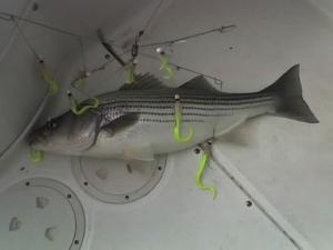 Line sides fishing are good on Carters right now and trout are still the ticket early in the morning on flat lines and planner boards. There is only about and hour window that this will work right at sun up and then the bite does a 180 on us. They go DEEP, real deep. This week the fish were as deep as 57 feet and the ticket to catching these fish is the find the bait. Almost all creeks are holding fish and bait but in some of the creeks they may be in the mouth. In others they may be half way back. Find the bait and down line right on top of them. If you need bait Bart's bait and tackle has what you need here is their phone number.706-253-BAIT. Trolling is working really well and just like at Allatoona, the Mack Farr umbrella rig in all white trolled right on top of the bait will get you bit. Give me a call and let's go get that record fish. Robert Eidson of First Bite Guide Service, 678-363-6260