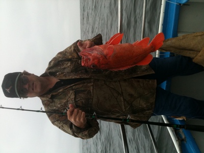 Huli cat started the day about as normal as possible, with a plan for a rockfish and lingcod trip. Even that was a risk, considering the weather forecast of 20 to 30 knots and 9 ft swell every 7 seconds plus a SW swell every 16 seconds. Intellicast told me the coast may escape the wrath of Mother Nature. Rolling the dice, I did not cancel and am now glad I didn't. We went out for rockfish with 26 anglers from Wilderness Unlimited. Huge swell, even a bit Daunting and disconcerning. A few folks were very late, a phone call revealed they misunderstood the departure time, so they went out on New Capt Pete on the 7am trip, as I arranged alerternate passage. Huli Cat was scheduled for a 6am trip. Horrible snappy swell, even at 9am, I wouldn't have placed money on limits of rockfish. Actually, we finished with limits by Noon in the Tunitas Creek/San Gregorio area! Great variety, even saw a number of Widow Rockfish as shallow as 120 ft, which bodes well for recoverey of the species. On the way in slowly to give the Deckhands, Lee & Mike, time to clean the fish, I keep getting messages from Flanagin about Salmon, "let's go out! WFO! Another post with slamon! Come on! Let's go!' It was the quintissential 20 something talking to the 60 something. Except that we went.
