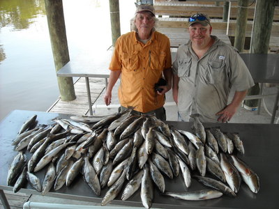 Ray Huntz and Richard back on board for another great day fishing Speckled trout in Hopedale LA. Ray had to take a break from fishing due to a minor surgery but from the pictures you can see he is back to his angling self. Ray and Richard had an awesome trip all nice trout and a few redfish to top off the day. Good to have Ray back in the boat again. All fish caught with campo live shrimp under a cork 2 ft deep.