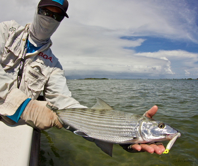 Tuesday morning not quite as early I boarded Capt. Ray Markham's Action Craft. We did not travel quite as far, nor did we fare quite as well. Jacks and ladyfish made up our catch. I saw eight bonefish but could not catch one. We wrapped it up about noon.