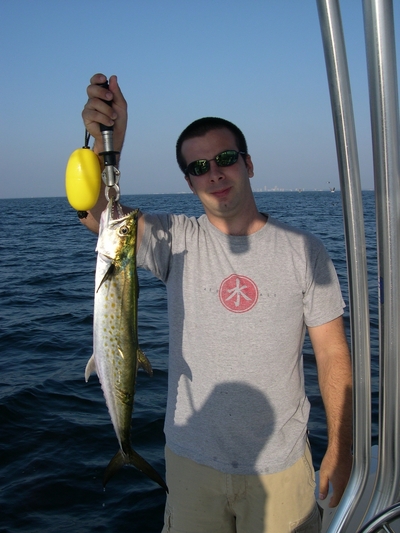 Thursday' trip was a bachelor party. With the big day this Saturday it was great way for the groom and friends to cut lose for a day. The trip was not starting until 10am so I decided to get a head start and ran to the flats near the East side of the Gandy bridge. Quality bait is a must and the Tampa Bay flats are loaded with whitebait, nice quantity and size. Look for the sandy potholes, toss quarter size pieces jack mackerel and wait for the feeding frenzy to start. Couple a quick casts are all I needed, use caution to not overfill your live wells. Too many bait can result in dead baits, frisky baits are key. On the run to the flats I ran past several schools of Jacks and on the 3rd school I decided to stop and play for awhile. Every cast had several fighting for my Clark Spoon. With time to kill, cooling water 78.1 and a nice outgoing tide I dropped the Power Pole on one of my favorite snook islands and the fun began immediately. No slot size fish but numerous 23-25' snook made for steady action. Time to pick up my guests, first 3 stops were in the Apollo Beach area as we had some very good success and had slams the last 2 trips. With the tide coming to a halt we managed only 2 small snook. We relocated to Little Cockroach with even less success unless you want to count catfish. David, Tony and Chris were very patient and a pleasure to have onboard. With basically no water movement I decided to change gears and move onto the deeper grass flats. Smart move, we managed to be in the middle of an invasion of Mackerel, Jacks and Ladyfish. The action was non stop with triple hook ups normal. Biggest challenge was getting fish un hooked quickly enough and get the angler back into the action. David hooked into a solid fish, after a few minutes were we all amazed to see a large snook that engulfed a Clark Spoon! Our day on the water was nearing an end; we left the fish biting for another day. Sunday we are running South to get back into the Bonita action. Earlier this season we did numerous trips all with outstanding results on Bonita 8-12 pounds.