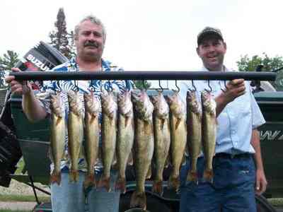 My brother Kevin and I hit the water yesterday (video) about 3:30 pm on a purely "search and destroy" mission for walleye. I thought since I had not been on the water in about a week and had a charter today, I better find some fish! We actually found and caught walleye in three of the four spots we tried, so it turned out pretty good. We only fished 4 hours, but we caught fish suspended 10 feet down in 35 feet of water trolling with boards and spinners, drifting along the breaks with Lindy Rigs, and we also caught fish pitching jigs in 6-10 feet of water. Didn't fish in any one spot long enough to really get our limit, but we accomplished our mission! So I was all set for today. Or was I??? I woke up and checked the radar and it did not look good, so me and my client waited out the storms and didn't get on the water until about 9:00 this morning. Guess what, we had our limit by 10:47! We released our 10th fish so we could keep fishing and then changed up and drifted the drop-offs with Lindy Rigs and upgraded 7 of the smaller keepers we had to bigger fish, so that worked out great. I just can't believe how much better the fishing is this year with the warmer water we have. The water temp. is now 75-79 degrees in most areas of the bay. Summer is going fast folks, better get out there and enjoy it...
