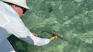 It has been a crazy month with few days off but I’ve been enjoying every day. I fished with Ward out of the Ocean Reef Club in Key Largo. I picked him up and he wanted to try fly fishing for bonefish and tarpon plus catch something to eat. Tarpon was the first on the list in south Biscayne Bay but the areas I checked had none in them. Off to bonefishing. Spot one was beautiful with good current and in the lee of the wind but it was dead. Hmm, ok spot two was in the wind but I put Ward at a good angle so he can throw his flyrod with the least amount of wind resistance and it worked as he laid out some really nice casts. Using a mix of spin and fly, I was able to get him his first bonefish using the trusty spin rod and shrimp combo. We continued to try for bones on fly without success so we went meat fishing for dinner but everything we caught was too small to keep. I think he'll forgive me not catching him dinner after getting him his first bonefish. Great job Ward!