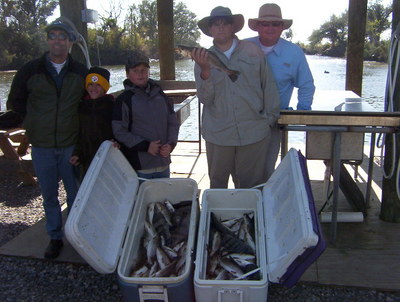 Breezy and bone cold today but my crew was ready to fish no matter what. Charles and Bill had brought their son's Anthony, Zack and Will down to fish from Birmingham AL. I had Bill and 9 yr old Zack and 11 yr old Will in my boat Capt Anthony too Charles and Anthony with him. We started out together but had to split up to get on the fish. The bite was slow with water temperature 51 early but we mangedeto put a few trout and reds in the boat. I found a protected area out of the wind so the boy's would not freeze and starting plugging a few trout. The bite was slow but steady. Around 10:30 the water was up to, 54 and the bite picked up with trout coming in at a steady pace. Called over the other boat and we fished side by side to finish off our limits along with a few drums and heads. Zack and Will were some real troopers I had to give Zack my hat and jacket to keep him warm, but these two young ones had ablast and toughed it out and ended up with a box full of fish. Thanks Capt. Anthony for helping out today Job well done. All fish caught 2 to 32 ft under corks with live shrimp.