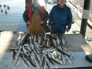 Charles Johnson and brother in law Steve from Natchitoches la come with me every winter and usually limit out every time but the only day they could come down I could not make it, So I called on Capt Kerry to get the guy's out on the water and catch some fish. Well with the COLD BRRR! Conditions it could have turned out slim. But it seems Kerry pulled a rabbit or redfish –trout or something out of the hat. But found the trout and reds in biting mood and filled the box for the guy's and sent them home with a load of fillets. Thanks K for taking care of my guy's