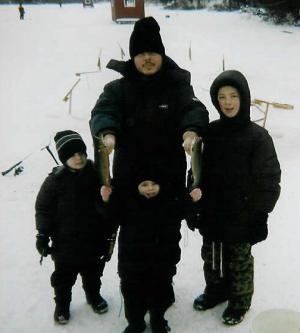 Ice fishing season finally got underway after an unseasonably warm December in 2006. Most of the crew came along for this one, as we were already suffering from withdrawal symptoms. We got out on the lake at about 9:30 AM, took about 20 minutes to get our holes drilled and our lines set up. The weather was in the –15 range when we arrived and eventually warmed up to about –10.