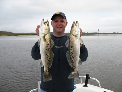 Floating live shrimp we caught at least 2 dozen Trout but we had several fish in the 3 to 4 pound range along with plenty of nice line pulling Blue fish.