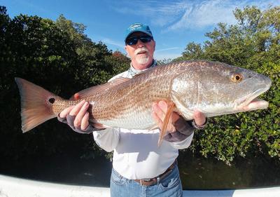 HOT BITE: The backcountry Redfish action normally is very productive this time of year but the added warmer weather has led to some of the best winter Redfish catches in years. Warmer weather usually drives Redfish into an eating early and often pattern, meaning that instead of eating one very large meal that can hold them over for a period of time (winter eating pattern) now these fish are eating smaller meals more frequently. Because these fish are eating regularly now, smaller prey is consumed more often. Small Shrimp, Crabs, and Baitfish are all warm weather prey for Redfish so live baits and artificial lures should be matched accordingly. Live Shrimp, Mud Minnows, and small Pinfish will be the top live baits. While artificial lures such as Gold Spoons, DOA Shrimp, Berkley GULP!, and Mirrolure Lil Jon’s and Mirrodines will be choice for those anglers looking to consistently cast and retrieve.