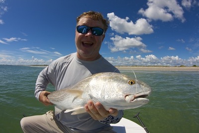 It got too easy, so we headed down the beach. I spotted some redfish and George got one over 30 inches on a live mullet, the best fish of the day.