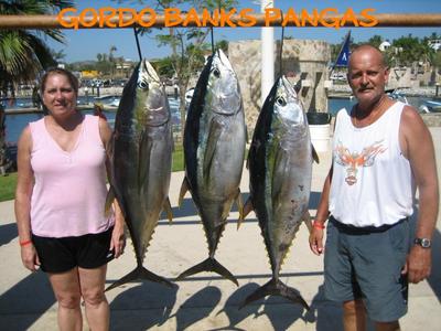 Larger fish seem to prefer the fresh strips of giant squid, also a percentage are being hooked while using sardinas, skipjack, bolito and chihuil, either by drift fishing or slow trolling. Most anglers were fortunate to land one of these quality sized tuna, others landed two and occasionally three, but many boats did not land one or told stories of loosing larger fish after extended battles. Wednesday the panga fleets encountered porpoise that were holding schools of tuna, nice fish of 20 to 50 pound were landed from this pod before they moved too far north out of range. Only a handful of yellowfin tuna of the football sized variety were caught off f the Santa Maria or Iman areas, more skipjack than anything else.