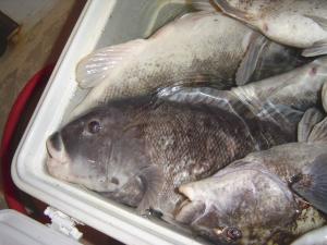 We had 6 anglers sch. for todays trip but some unforseen circumstances keept Joe and his guys from making it down. So we left the dock in a stiff south wind with Bernie , Joe and John. Capt. Mike had god life on the reef right from the get go with the guys landing 20 togs by 11 am all nice quality fish. After that the bite slowed so Mike took the guys off to 17 where they completed the day with another 20 quality fish. Bernie had 9 keepers to 7lbs while Joe and John had 13 fish between them with some nice 6s and 7s . With a light crowed Mike and Skip had a chance to fish a bit and both limited out on fish to 8lbs Whites and greens both produced, Whites inshore and Greens on 17. Great fishing and doing it in 70 deg. temp in Jan. what a deal.